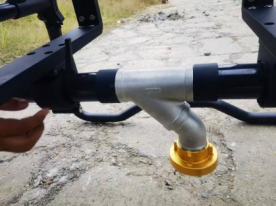 The water lance measures 150 cm (59 in) in length with a 40 mm (1.6 in) diameter, featuring a 12 mm (0.5 in) nozzle orifice, a dual-channel design (with the lower gold-colored port serving as the inlet and the silver-colored port as the outlet), and is constructed from carbon fiber.